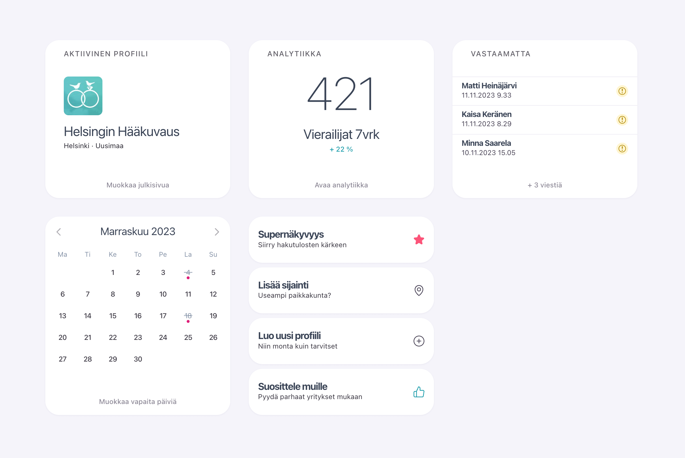 Suosittelut ja arviot asiakkailta parantavat palvelusi luotettavuutta ja houkuttelevat uusia asiakkaita.